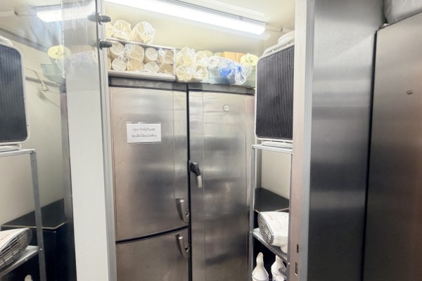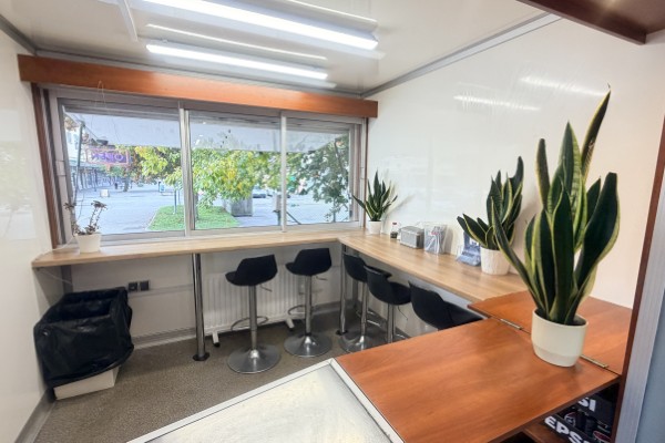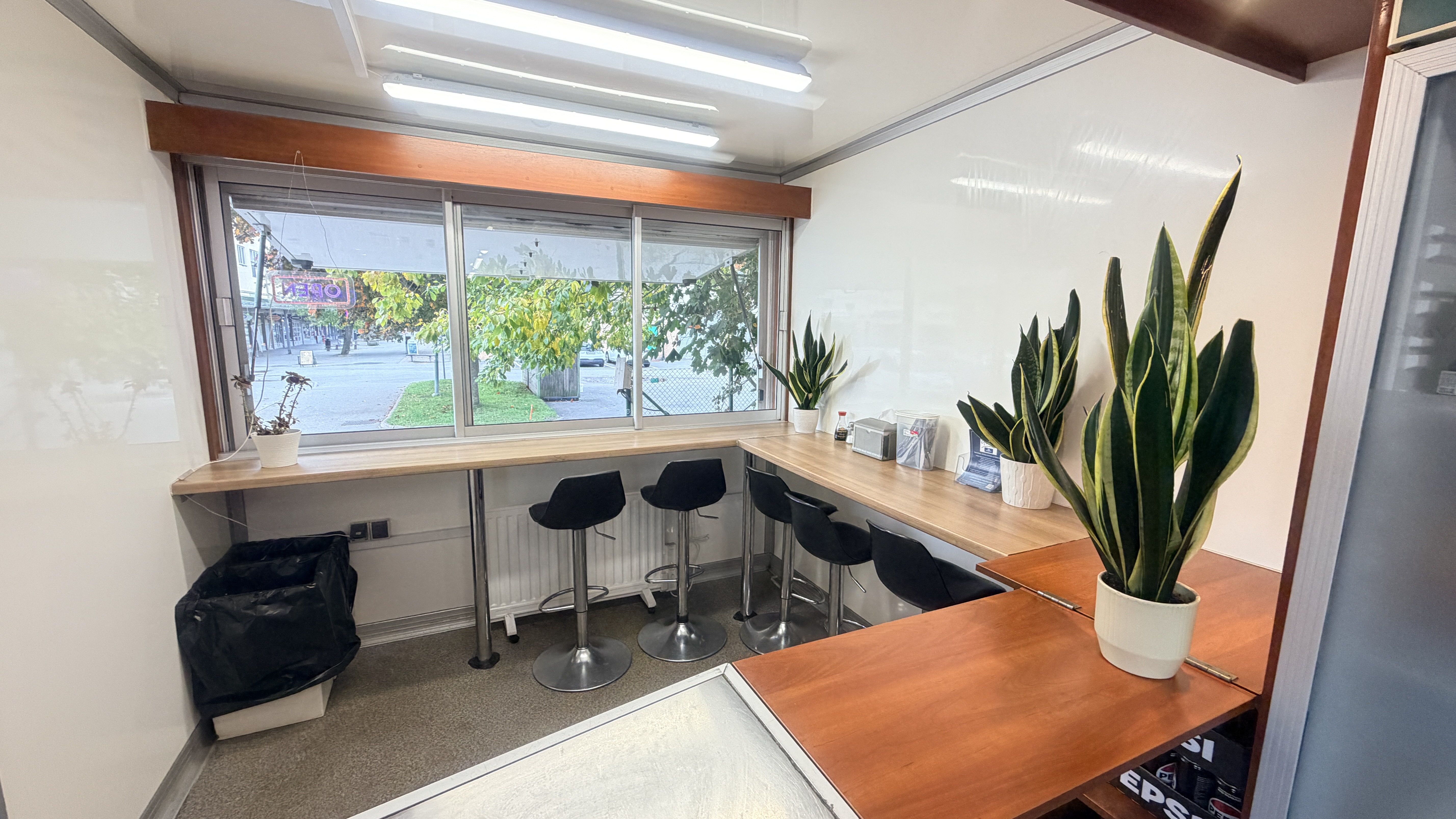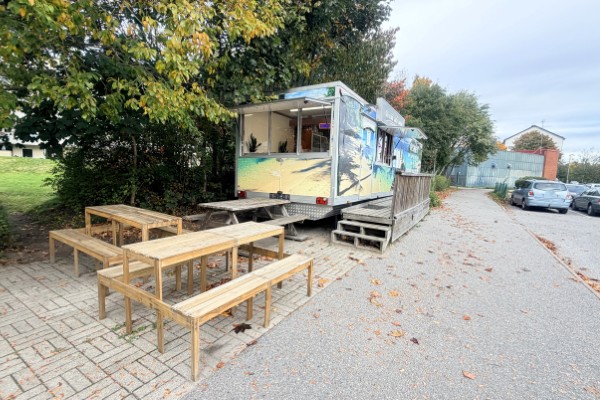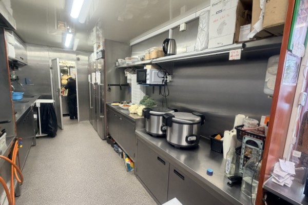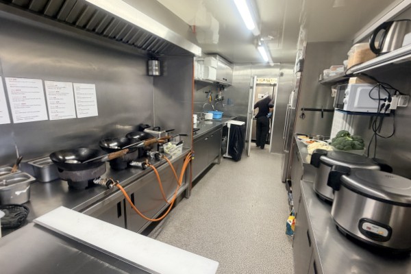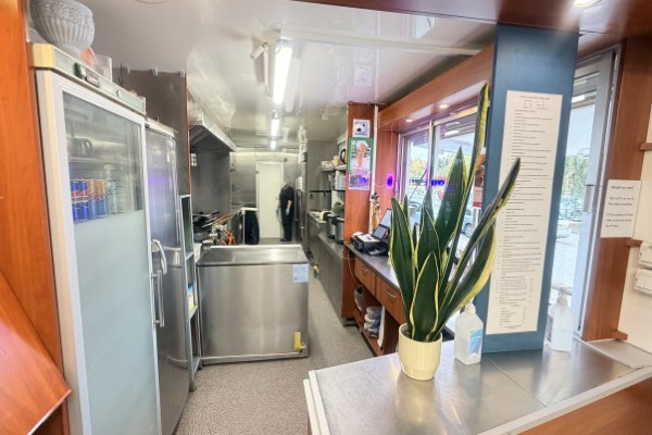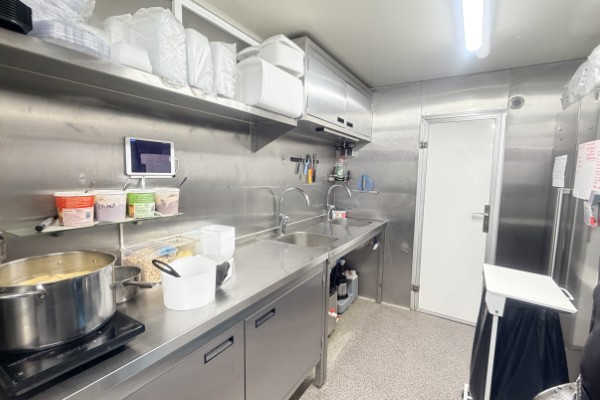 Köket är stort och har all utrustning som behövs för verksamheten. Det finns gas, bra ventilation och fettavskiljare, vatten finns indraget samt nyinstallerat avlopp. I serveringen finns det 8 platser och på uteserveringen finns det 12 platser. Allt i vagnen är byggt med hög kvalité i enlighet med alla regler och håller mycket bra standard. Det finns bra med lagerutrymmen med mera. Utanför vagnen finns en stor parkering.