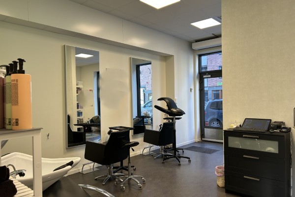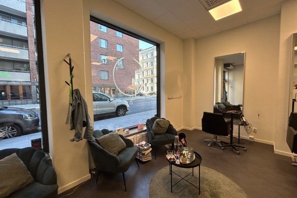 Det finns fem stolar för frisörer samt två schamponeringstolar. Bra personalrum/kök, med två separata diskhoar. Ett stort ljust och fint rum finns, kan användas för uthyrning som behandlingsrum eller användas till fler stolar eller annan typ av inriktning i salongen.