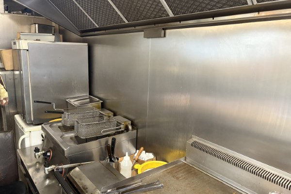 Gatuköket har sedvanligt utrustning för verksamheten som stekbord, fritös, kyl och frysskåp och kyl för läsk.