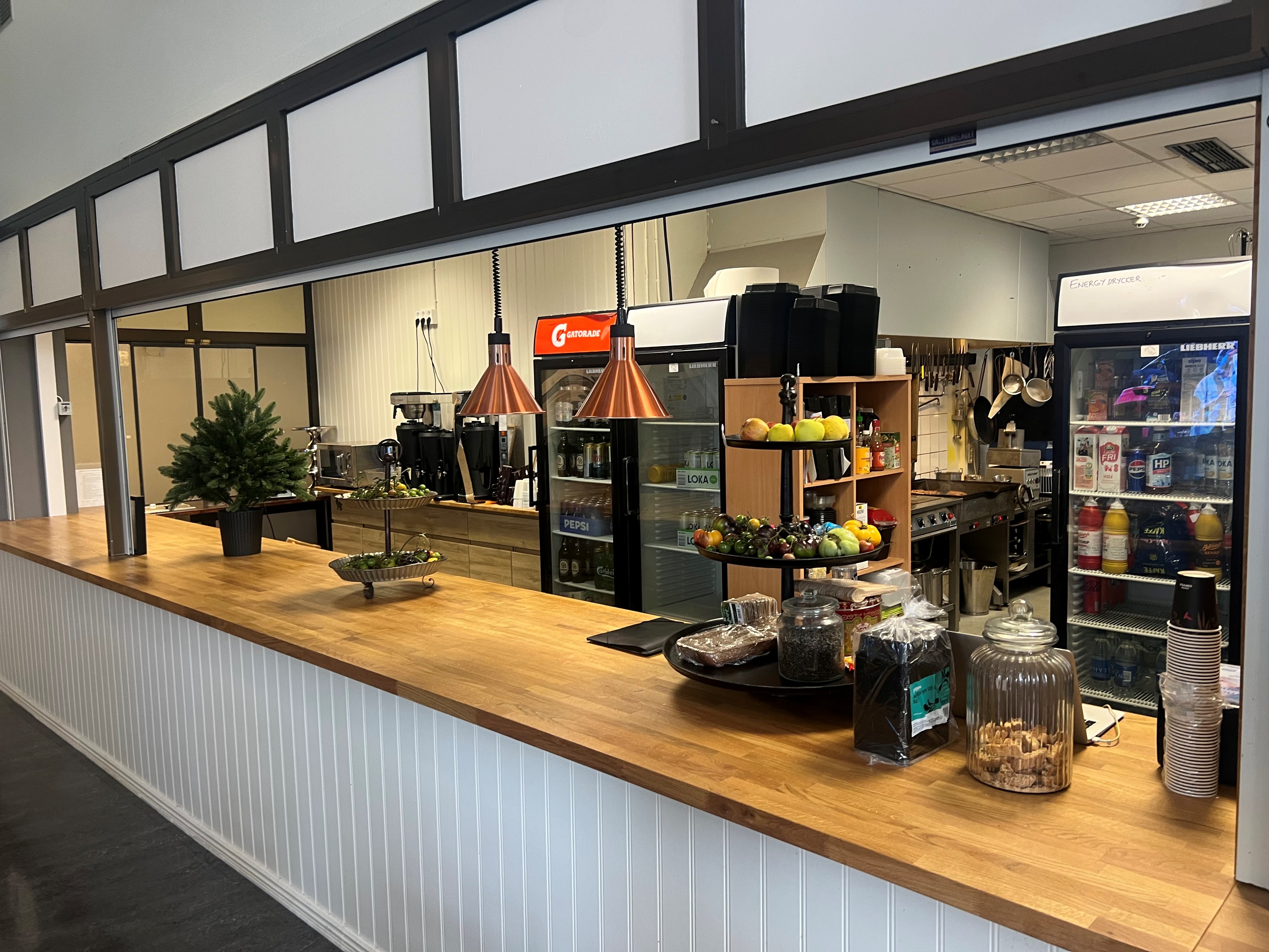 Totalt finns det ca 60 sittplatser i caféet. Dessa går att utöka. Köket är väl utrustat och rymmer bland annat, stekbord, varmluftsugn, separat disk, kylrum, stora frysskåp med mera samt mycket goda förrådsutrymmen. Caféet är inte öppet på vardagar, men att öppna upp för lunch skulle kunna vara en hit!
