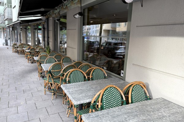 Lokalen har ca 50 platser inne och 40 platser på trevlig uteservering. Planlösningen har avlång karaktär med mängder av fönster i serveringsdelen.