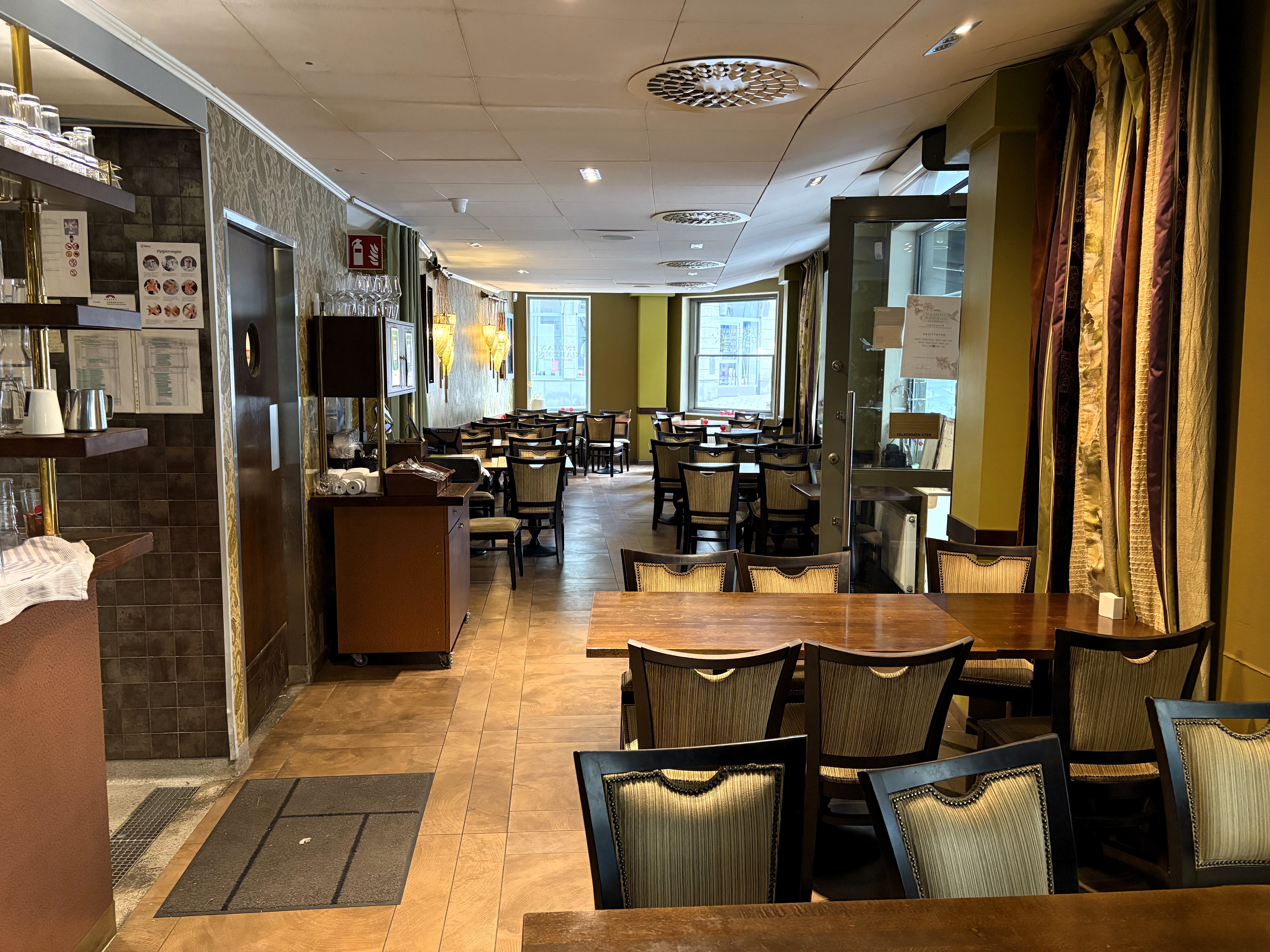 Nuvarande ägare driver restaurangen med indiskt koncept, men det kan enkelt ändras om man så önskar.