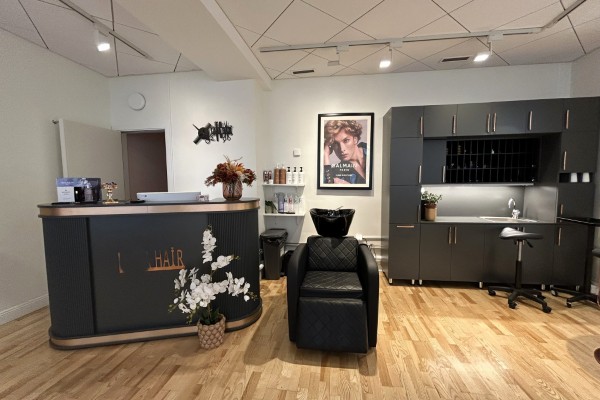 Nyligen totalrenoverad, två frisörstolar och en schamponering, snyggt litet pentry och personal-wc, så här kan man börja fokusera direkt på arbetet.