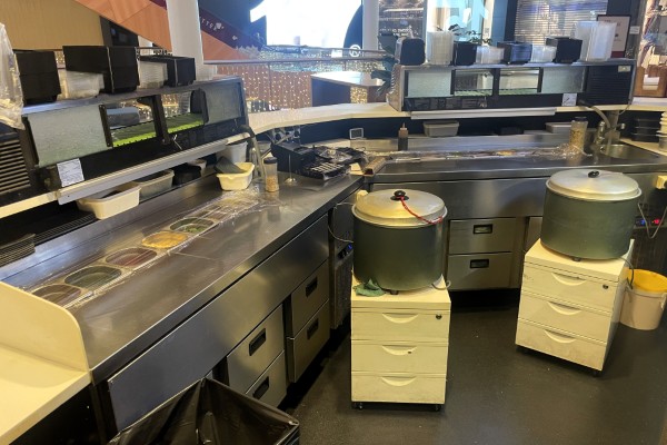 Denna populära Sushi är belägen med bra läge i välbesökta Täby Centrum Gallerian. Det finns ca 60 platser på den öppna fräscha serveringen. Man har även ett extra förråd på ca 27 kvm, där man bland annat har frysar/kylar samt att denna del kan användas som prepp kök.