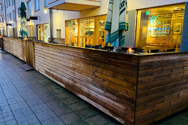 Förutom att lokalen, maskiner och övriga inventarier är i mycket gott skick, så har man här en väl fördelaktig hyra med tanke på vad som ingår. Sophämtning, bra förrådsutrymmen och den stora uteserveringen med ca 80 platser.