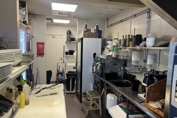 Lokalen är mycket ljus och trevlig och har bra hörnläge vid en vältrafikerad gata, nära till både busshållplats och pendeltågsstation. Stora skyltfönster i två väderstreck. Högt i tak! Antalet platser är ca 30. Dessa går att utöka något. På uteserveringen finns det ca 30 platser.