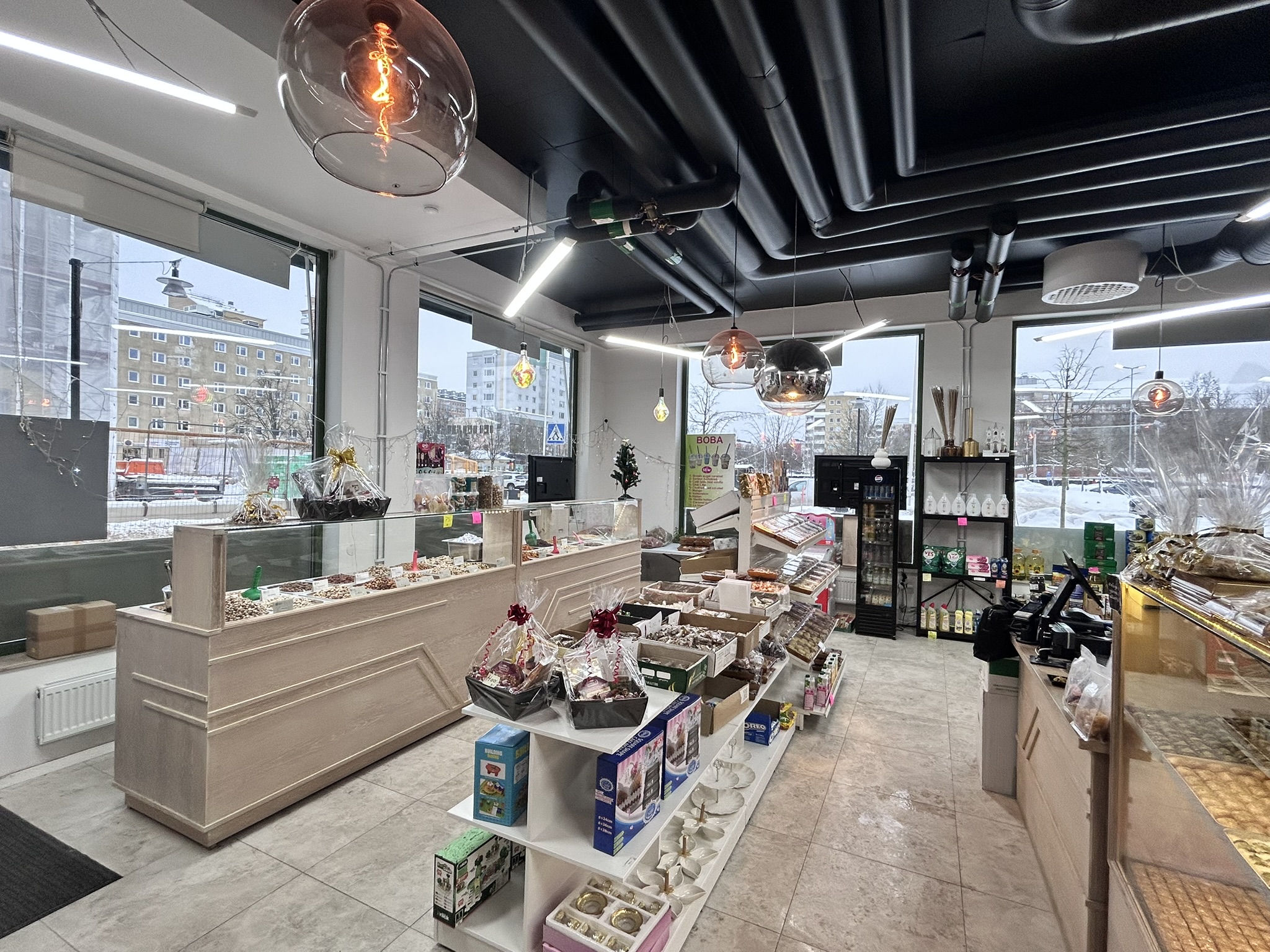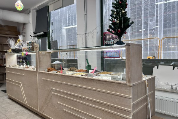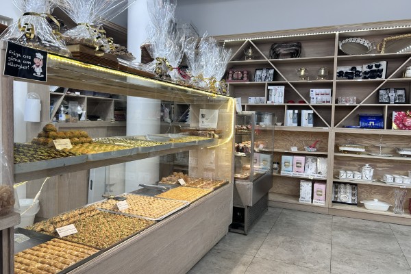 I denna ljusa lokal med högt i tak samt hörnläge med fönster runt om, finner man en fin livsmedelsbutik/servering och butik. Verksamhetsinriktningen är i dagsläget bakverk som Baklava av olika sorter, populära tårtor och nötter samt en del livsmedel.