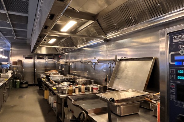 Stort kök med mycket bra ventilation, gas, stekbord, ugnar, kyl-frysrum, diskrum och övrigt man kan önska sig för att kunna arbeta enkelt och samtidigt kunna få ut mycket mat på ett effektivt sätt.
