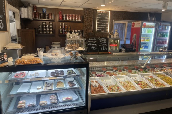 Omsättningen ligger på ca 8 000 kronor per dag. Menyn erbjuder sallader, olika soppor, grillade smörgåsar, köttgryta med mera. Dessutom sedvanlig cafémeny med varm och kall dryck.
