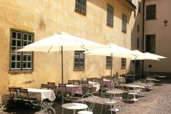 I anrik slottsmiljö hittar ni detta fina café, inrymt i en av flyglarna och med en stor uteservering på borggården.