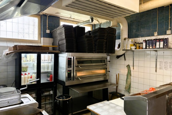 Restaurangen är på hela 480 kvm totalt. Entréplanet är det som används dagligen och här finns 54 platser och en stor bar. Fullt utrustat kök med bra ventilation och fettavskiljare. Menyn består av pizza, pasta, kebab, burgare och några kötträtter. Det finns 4 Vegas maskiner intill baren samt en stor uteservering på torget utanför entrén.