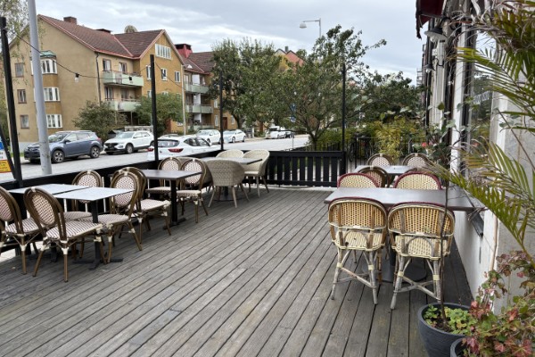 Lokalen är belägen i bra bostadskvarter i Solna. Fint hörnläge med stor uteservering som ingår i hyran. Uteserveringen är väl tilltagen och har 60 platser i två väderstreck på plan veranda.
