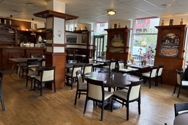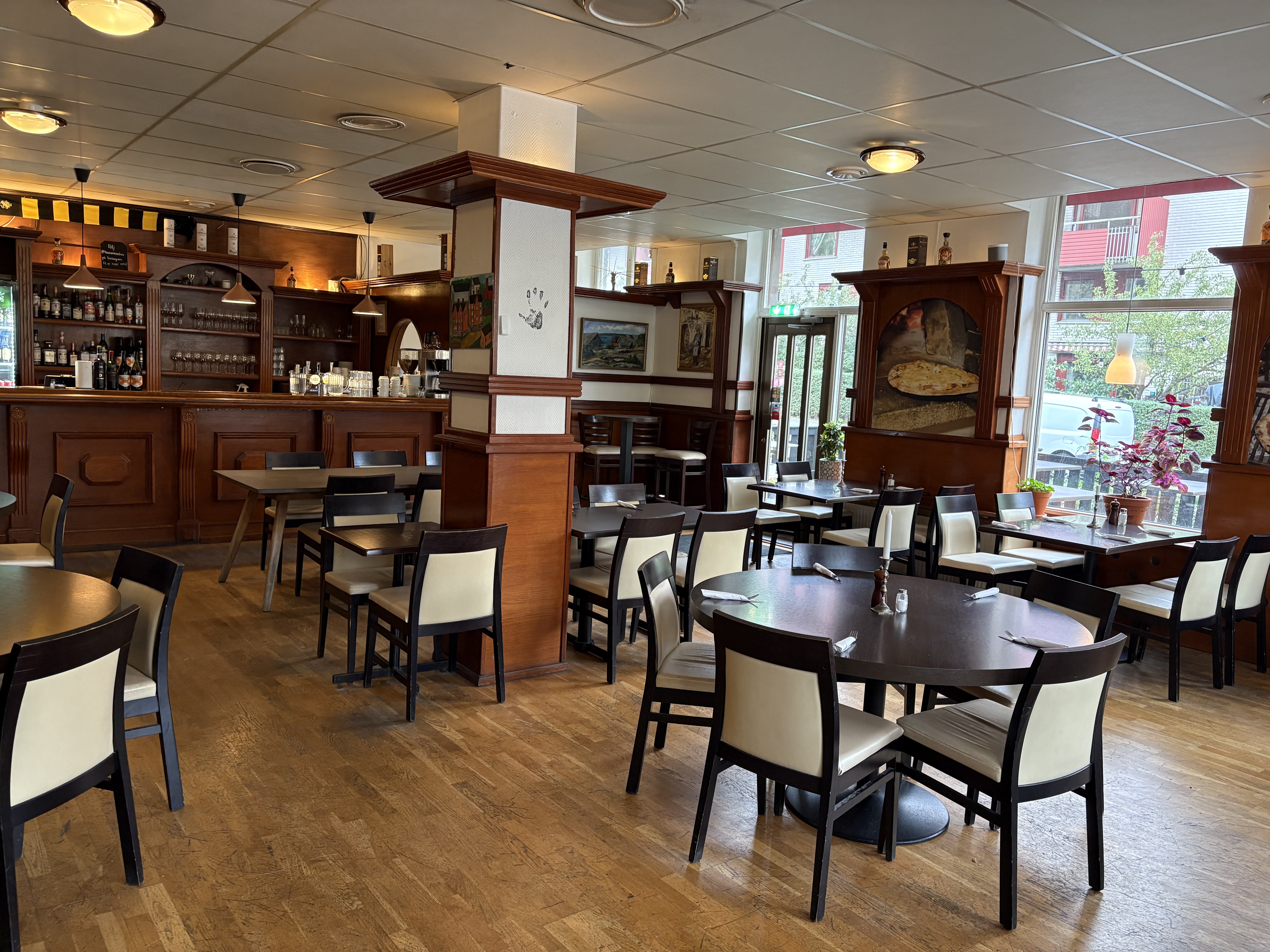 Lokalen har 55 platser på entréplan och ytterligare 40 platser en trappa ner. En stor bardisk överblickar lokalen. Två kundtoaletter på entréplan och ytterligare en på nedre plan. Det nedre planet kan med fördel hyras ut för bokningar och fester, tidigare har man haft en dartklubb här.